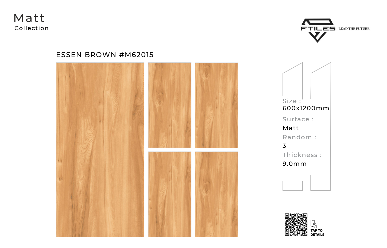 Với gam nâu marble sang trọng và bề mặt Matt chống trơn, ESSEN BROWN M62015 lý tưởng cho: