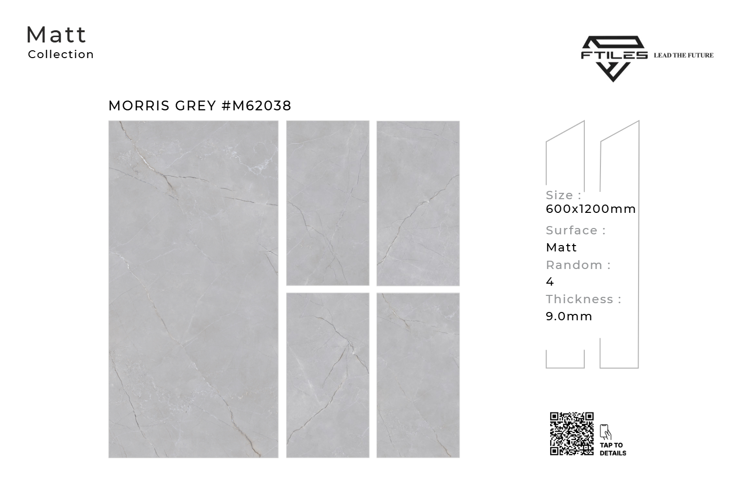 Với gam xám trung tính sang trọng và bề mặt Matt, MORRIS GREY M62038 lý tưởng cho: