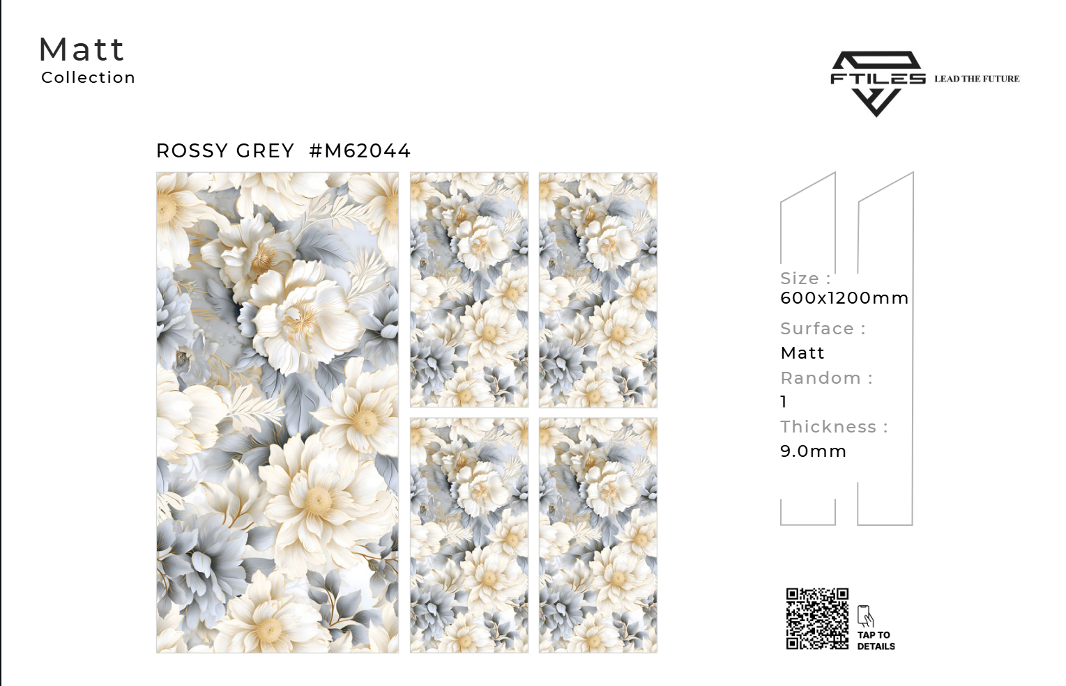Với gam xám trung tính và bề mặt Matt, ROSSY GREY M62044 lý tưởng cho: