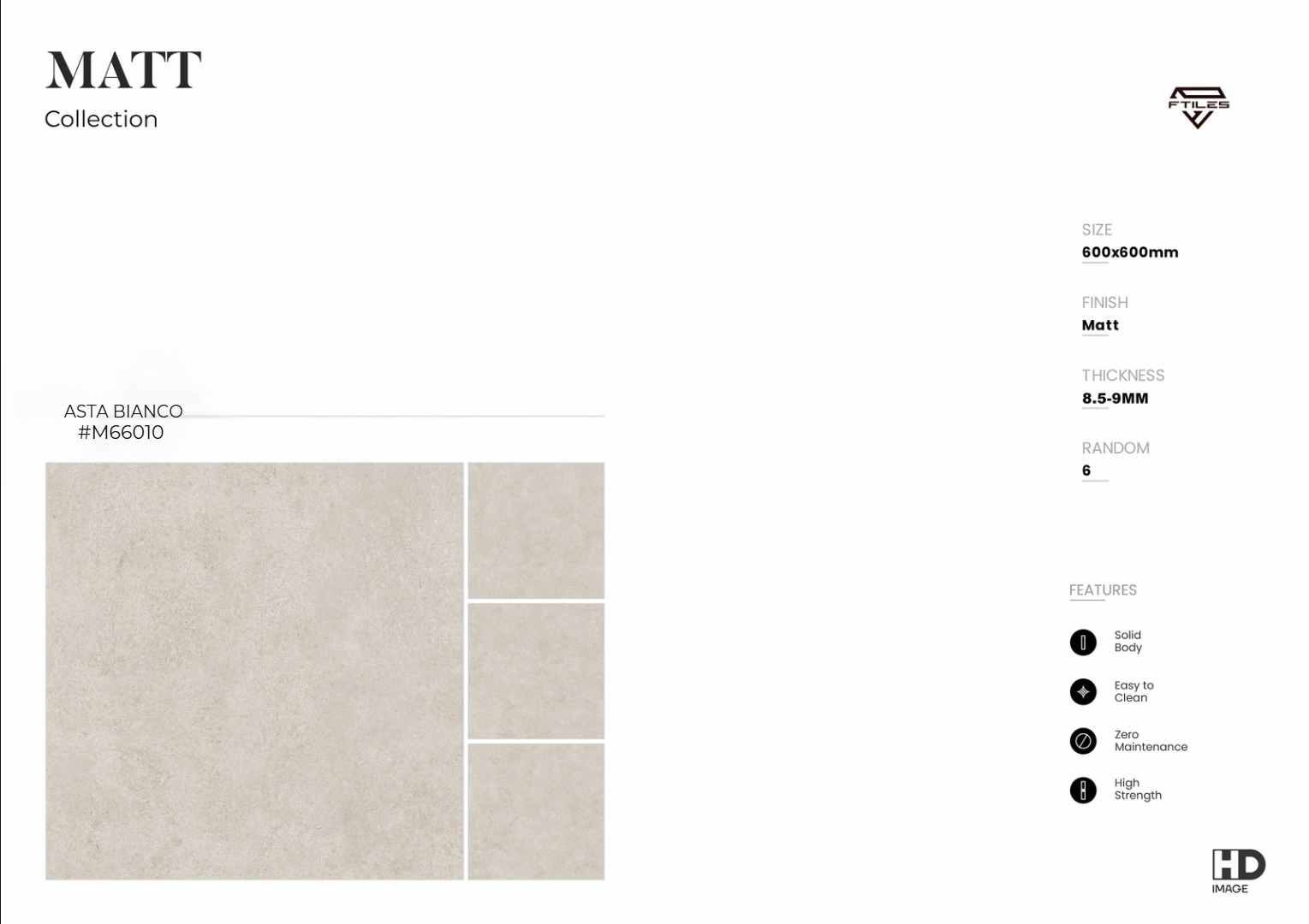 ASTA BIANCO – M66010 không chỉ là vật liệu lát sàn, mà còn là giải pháp hoàn thiện không gian hiện đại & an toàn. Với gam trắng marble tinh khôi, vân đá tự nhiên thanh lịch, bề mặt Matt chống trơn và độ bền vượt trội, sản phẩm mang lại sự cân bằng hoàn hảo giữa thẩm mỹ – công năng – an toàn, lý tưởng cho cả công trình dân dụng và thương mại cao cấp.