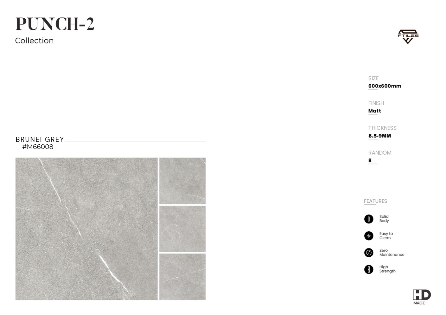 BRUNEI GREY – M66008 là mẫu gạch Matt (mờ, chống trơn) cao cấp, kích thước 600x600mm, nổi bật với gam xám ghi hiện đại cùng vân đá marble tự nhiên thanh lịch. Bề mặt mờ không chỉ mang lại sự an toàn – tinh tế – sang trọng, mà còn giúp dễ dàng ứng dụng trong nhiều loại công trình.