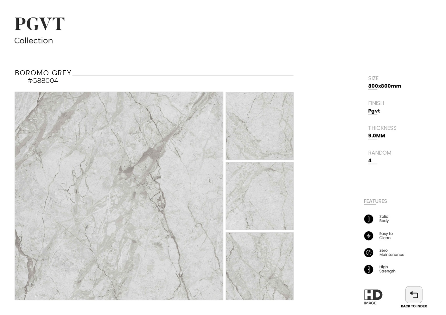 BOROMO GREY – G88004 không chỉ là một loại gạch lát sàn, mà còn là giải pháp kiến tạo không gian sống và làm việc mang tính biểu tượng. Với thiết kế vân đá marble đậm, gam màu xám trung tính và bề mặt PGVT bóng kính, sản phẩm đem lại sự kết hợp hoàn hảo giữa thẩm mỹ – công năng – độ bền, khẳng định đẳng cấp cho mọi công trình cao cấp.