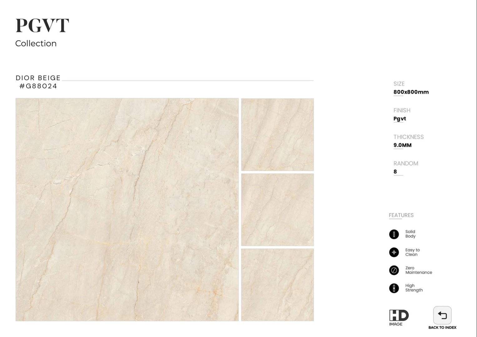 DIOR BEIGE – G88024 là mẫu gạch PGVT (Polished Glazed Vitrified Tile) cao cấp của FTILES. Với kích thước 800x800mm, bề mặt bóng kính tinh xảo, sản phẩm mang sắc be ấm áp kết hợp vân đá marble mềm mại, đem lại vẻ đẹp sang trọng – thanh lịch – tinh tế cho mọi công trình.